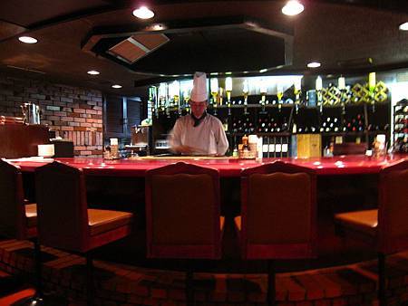 廚師在那個鐵板上煮 煮玩才送過來我們這桌